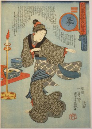 0366 国芳 人間万事愛婦美八卦意 拳 拳酒の晩鐘 Ken / Incidents of Everyday Life for the 8 Views and the 8 Trigrams / Kuniyoshi