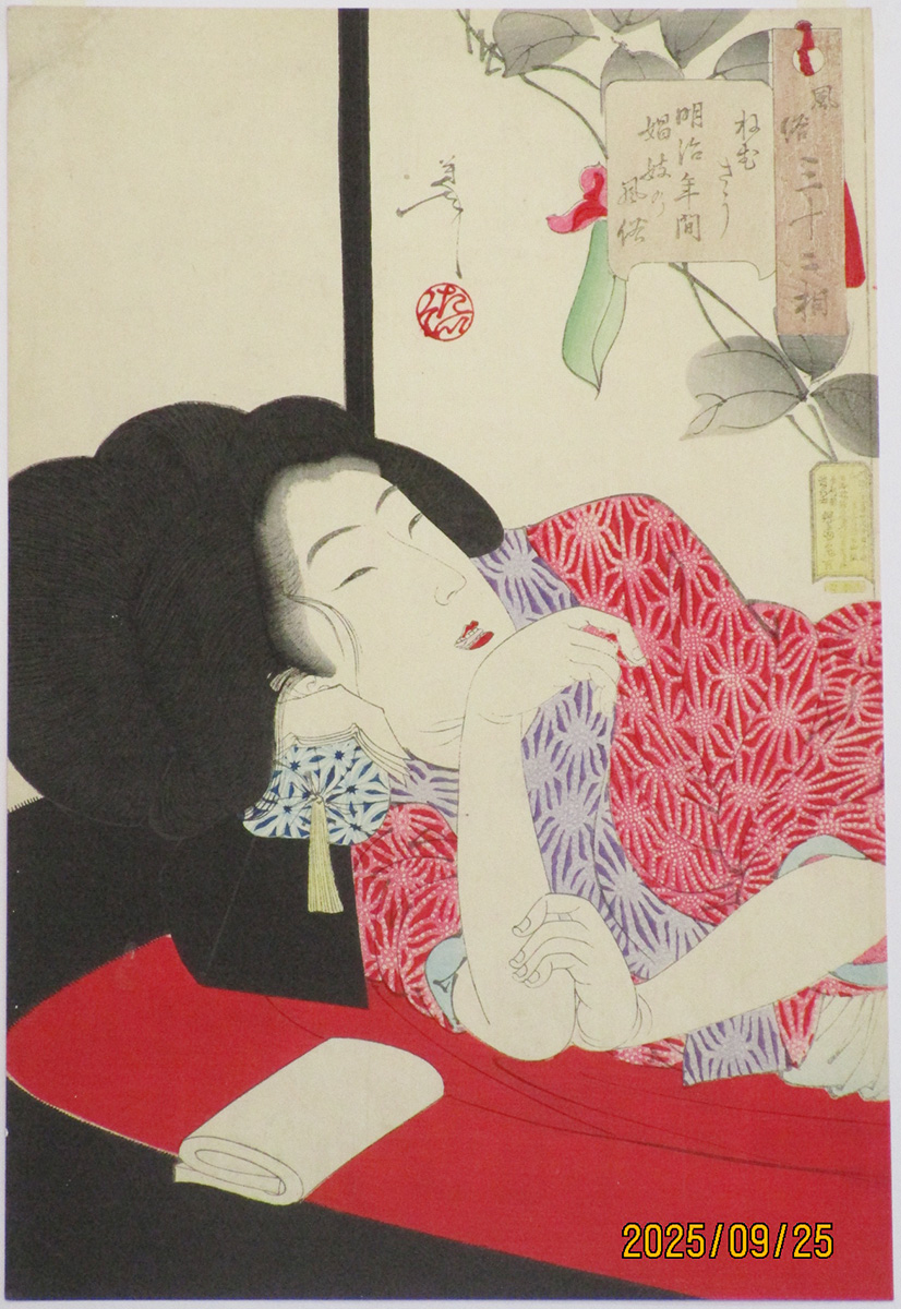 1215 芳年 風俗三十二相 ねむそう Looking sleepy / 32 Aspects of Women / Yoshitoshi