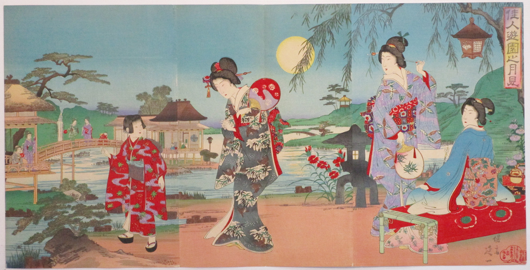 1240 延一 佳人遊園之月見 Beauty women enjoy the moon / Nobukazu