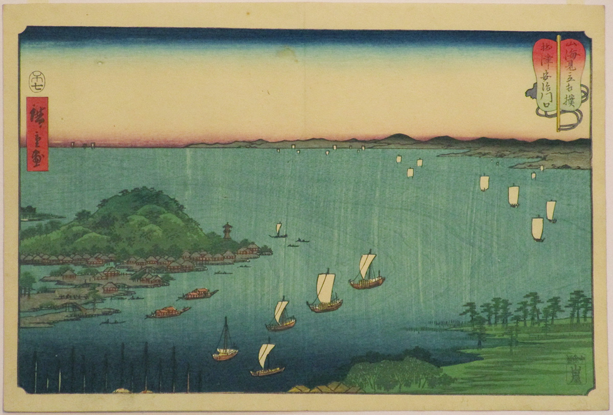 1257 広重 山海見立相撲 摂津 安治川口 Settsu Ahigawaguchi / Wrestling Match Between the Mountains and the Sea / Hiroshige