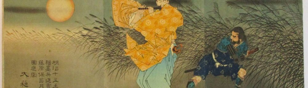 1409 芳年 藤原保昌月下弄笛図 Fujiwara Yasumasa plays the flute by moonlights' / Yoshitoshi