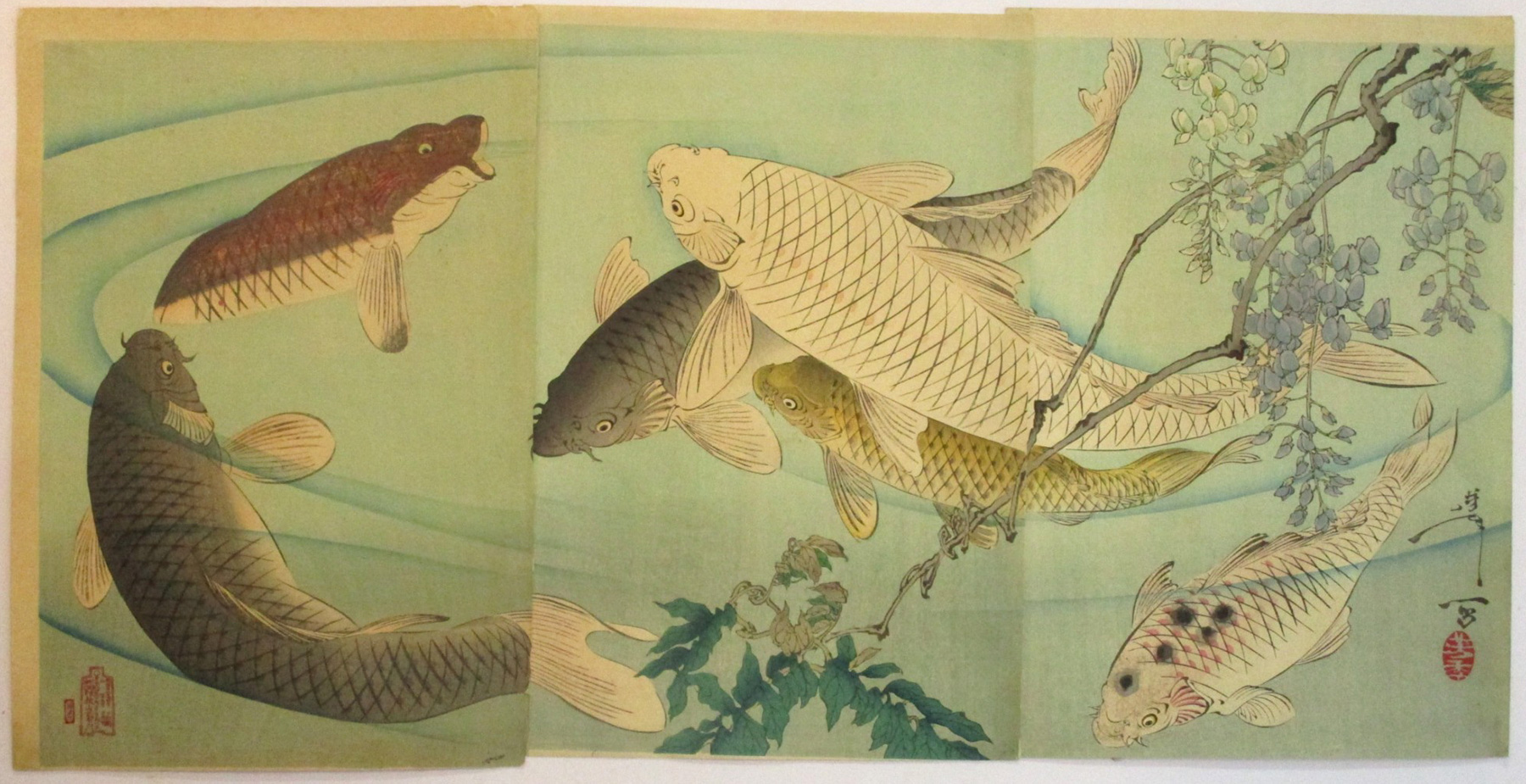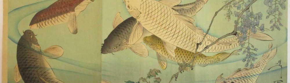 1410 芳年 藤花鯉魚 Six carp swimming beneath wisteria / Yoshitoshi