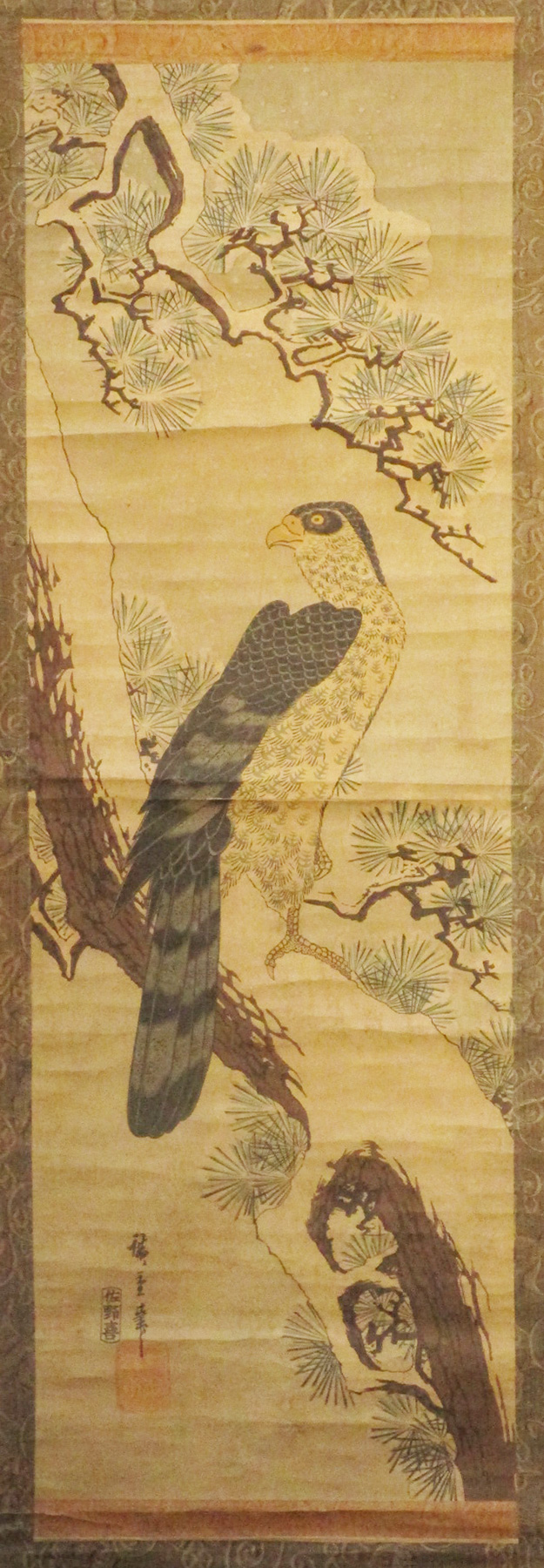 雪中松上の鷹